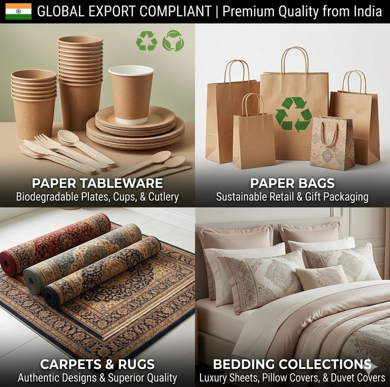 RANJAN IMPEX is a dynamic export house based in India, dedicated to bridging the gap between Indian manufacturing excellence and the Global market. From the heart of North Indian commerce, we specialize in sourcing and supplying high-quality products across: Sustainable Packaging and Home Furnishing. Our commitment to the India-Australia ECTA ensures that our partners benefit from seamless, duty-free trade. At Ranjan Impex, we don't just export products; we export trust, backed by rigorous quality checks and a transparent supply chain."
