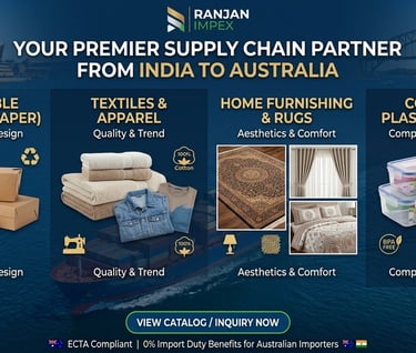 Unlock the full potential of the landmark India-Australia Economic Cooperation and Trade Agreement (ECTA) with Ranjan Impex. We specialize in providing Australian businesses a strategic advantage by ensuring 0% Import Duty on premium Indian-manufactured products.